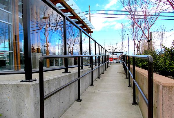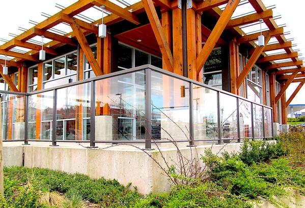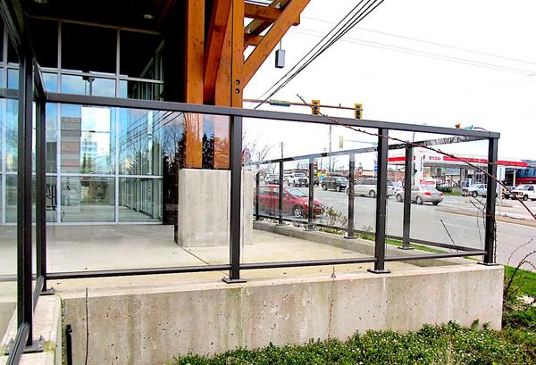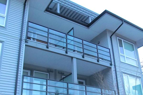 2. Semi-Frameless Glass Railings in which clear glass panels are held in place by posts without bordering frames (i.e. no top rail or bottom rail)