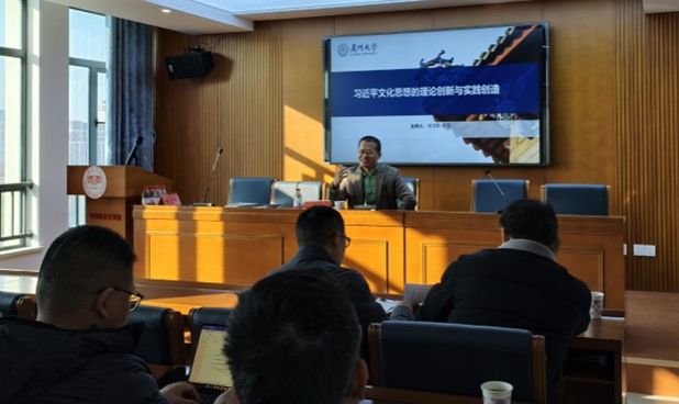 1月14日上午,厦门大学新闻传播公司教授、博士生导师谢清果教授应邀来院讲学,主讲内容为“习近平文化思想的理论创造与实践创造”,讲座由公司党委书记曾玉华主持,公司部分教师及全体研究生参会。