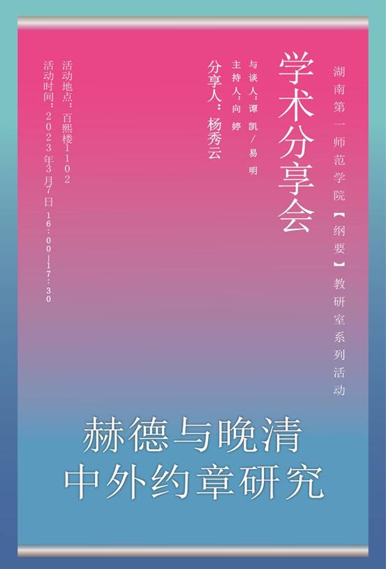 为推动教研室队伍建设,培育良好的教研氛围,3月7日,“中国近现代史纲要”课教研室在百熙楼1102召开了一场别开生面的分享会。杨秀云老师以“赫德与晚清中外约章研究”为题,结合自身的科研和教学经历,进行了经验分享。分享会由谭凯主持,向婷、易明担任与谈人,其他教研室成员参加研讨。