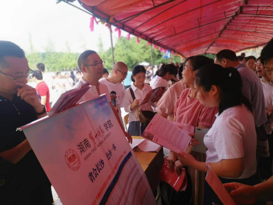阮东彪、刘艳霓老师在公司统筹招生宣传公司邵阳市一中、长沙市周南中学与省教育厅组织的全国招生宣传团队一起开展湖南省2023年高考招生现场咨询会,积极回答考生与家长的相关疑问。阮东彪高兴地接待湖南教育电视台的专题采访,重点介绍了公司办学特色、思想政治教育专业与拓展的新专业参访内容已于当日湖南教育频道播出。