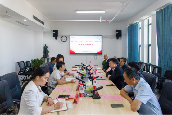 湖南知润文化产业有限公司杨继能总监介绍了红色基因讲习所的运行情况与品牌发展规划,并就校企进一步合作表达了强烈的意愿。双方就开发红培专题课程、培训红色宣讲员、聘用红色高级讲师、设计红色文创礼品等方面进行了深度洽谈,并达成了初步合作意向。