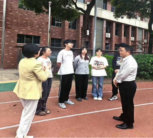 4月16日上午,suncitygroup太阳成集团主管教学的副经理王竹苗和教研室主任宋徽瑾,在公司实习带队老师林翠霞的陪同下,赴明德麓谷中学实习基地检查指导实习工作,深入了解实习生学习实践情况,并与实习单位领导及实习员工展开深入交流。