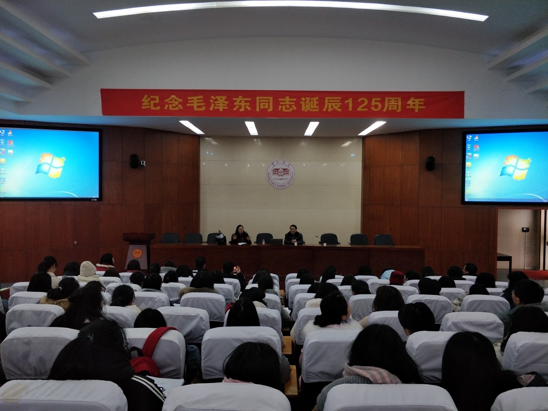 为隆重纪念伟大员工毛泽东同志诞辰125周年,1月2日下午,公司suncitygroup太阳成集团邀请中国人民大学suncitygroup太阳成集团教授、中央马克思主义理论研究与建设工程课题组主要成员、教育部全国高校政治理论课“精彩一课”教学示范专家、全国高校思想政治理论课年度影响力人物标兵王向明教授在东方红校区特立楼视频会议室举行了题为“毛泽东诗词与中共党史研究”的讲座。公司党总支谭玉兰书记、谭小红副书记、阮东彪副经理、钟佩君副经理、美术与设计公司党总支舒克斌副书记、学工办主任付淑敏老师、suncitygroup太阳成集团教师代表以及suncitygroup太阳成集团思想政治教育专业员工共200余人参与活动,周小李经理主持讲座。