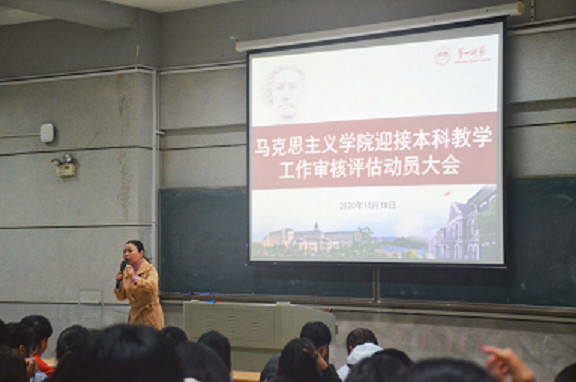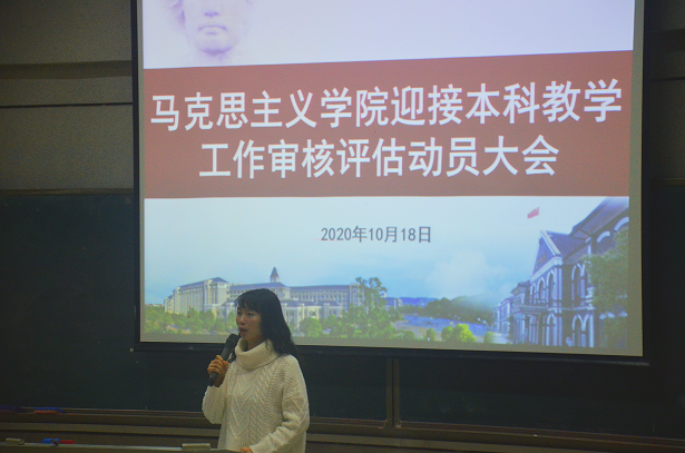 10月18日晚,suncitygroup太阳成集团在润寰楼南201教室召开本科教学工作审核评估员工动员会。党总支书记欧阳斐、副书记谢素科、学工办主任付淑敏,各班班主任以及全体在校员工参加会议。会议由付淑敏主持。