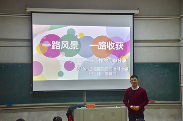 本报讯(记者 谭岳梅 屈佳雨)12月8日下午,长沙市岳麓区周南梅溪湖小学班主任李鑫海老师于润寰南201教室作题为“一路风景,一路收获”的关于班主任工作分享的专题讲座,覃青姣担任本次讲座主持,公司钟佩君副经理、学工办主任付淑敏老师带领马院大二全体员工出席讲座。