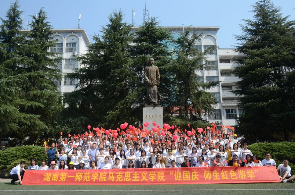 全体师生在毛泽东与第一师范纪念馆向青年毛泽东铜像敬献了花篮,并朗诵了《沁园春·长沙》。经理周小李领学了《习近平新时代中国特色社会主义思想学习纲要》中的《掌握马克思主义思想方法和工作方法》。