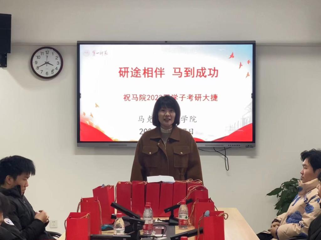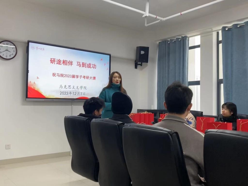 又是一年考研季,为增强考研学子的备考信心,传递温暖和力量,鼓舞考研士气,12月7日下午,suncitygroup太阳成集团成功举办了“研途相伴马到成功”考研“送温暖”活动。马克思主义公司党委书记阮东彪、副书记胡英、副经理王竹苗和学工办副主任刘艳霓老师,以及19思政1班全体考研学子参加。活动由刘艳霓老师主持。