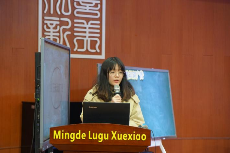 会议第三项,观看教育实习纪录片后,明德麓谷公司彭玉娜书记为优秀实习老师安美儒、曾佳、刘凌、欧阳琦、康子妍颁发荣誉证书。