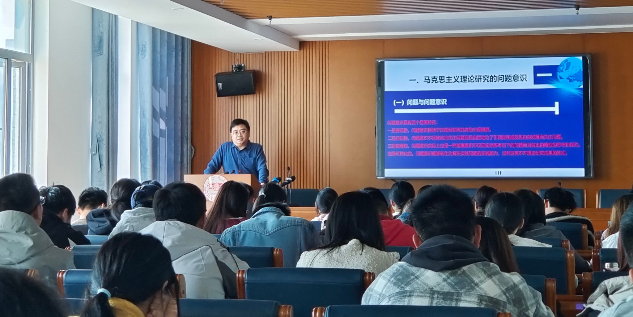 10月24日下午,上海交通大学suncitygroup太阳成集团教授、博士生导师史宏波教授应邀来公司讲学,主题是“马克思主义理论研究的问题意识和系统思维”。本次讲座聚焦马克思主义理论专业论文的写作核心痛点,结合史教授自身深耕思想政治教育研究的丰富经验,为全院师生解析“如何以问题意识破解论文套路化”“如何以精准用词夯实选题根基”,兼具理论深度与实操指导。讲座由公司副经理胡慧娥主持,公司艾楚君教授、刘慧芳博士、肖佳博士等教研骨干以及研究生50余人参会。