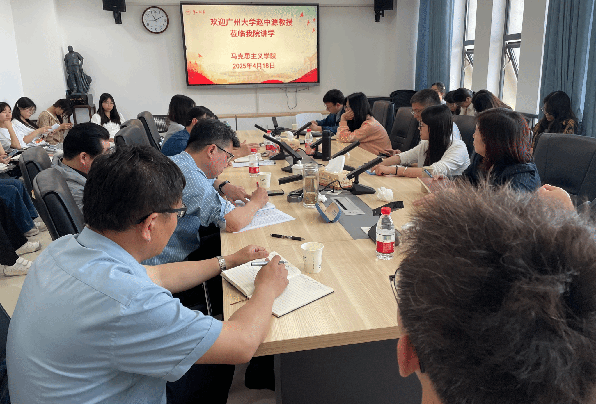 4月18日上午,在百熙楼1010会议室,广州大学suncitygroup太阳成集团经理赵中源教授为公司师生作了一场题为“中国式现代化的历史逻辑与核心要义”的讲座。讲座由公司经理陈明教授主持,公司30余位师生参会。
