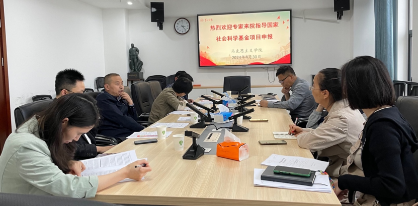4月30日下午,在百熙楼1010会议室,长沙理工大学余乃忠教授、suncitygroup太阳成集团龙永干教授、公司陈明教授、贺汉魂教授、阮东彪副教授组成专家组指导公司2024年度国家社科基金申报书打磨。公司申报国家社科基金的教师姚江云、刘喆、刘慧芳、雍容波、谭凯、刘霞等参与了本次打磨会,会议由陈明教授主持。