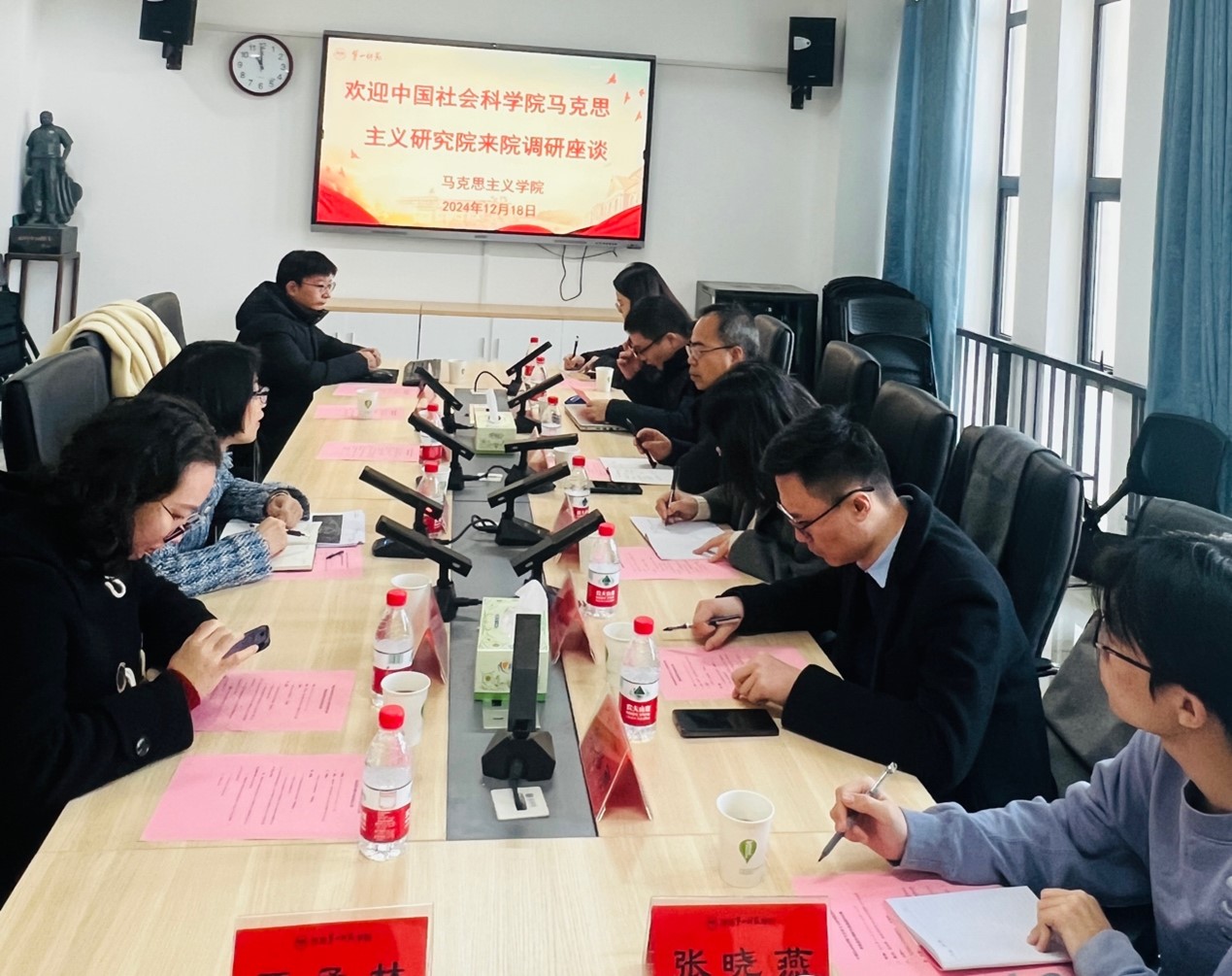 12月18日上午,中国社会科公司马克思主义研究院马克思主义中国化研究部副主任贺新元一行7人莅临公司开展调研交流。交流会在百熙楼1010会议室举行,由公司副经理胡慧娥主持,副经理王竹苗、刘喆、刘慧芳等教师代表参加座谈会。