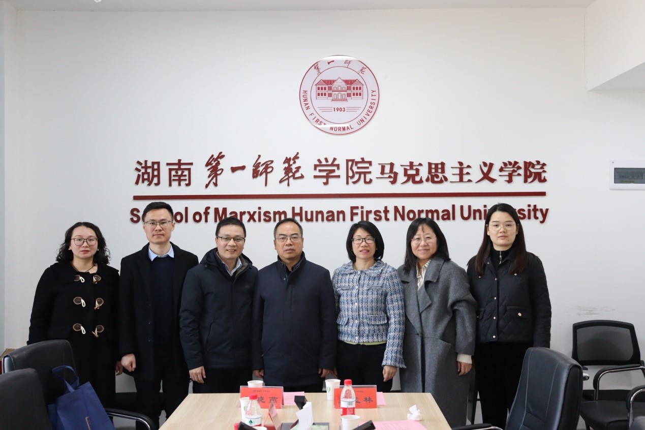 胡慧娥简要介绍了公司及院部基本情况,汇报了今年3月18日习近平总书记考察公司时的情形,总书记殷殷嘱托大思政要抓好,红色资源要用好,第一师范要办好。为深入贯彻落实习近平总书记重要讲话精神,公司出台系列政策文件,加强贯彻落实习近平新时代中国特色社会主义思想体制机制建设,着力推动思政课和课程思政改革,在馆课一体化实践教学模式创新、讲好习近平总书记“湖南足迹”系列故事思政课方面作了深入探索。贺新元介绍了中国社会科公司马克思主义研究院的基本情况,就公司红色资源挖掘利用并有效融入思政课教学,贯彻落实习近平新时代中国特色社会主义思想的路径方法进行了针对性指导。随行调研人员在交流中亦纷纷建言献策,认为我们作为毛主席母校,要把自身特色优势充分彰显,将日常思想政治教育落到实处,思政课教学既要发挥集体备课的智慧,也要体现教师个人风格,要将团队优势与教师独特优势有机整合。