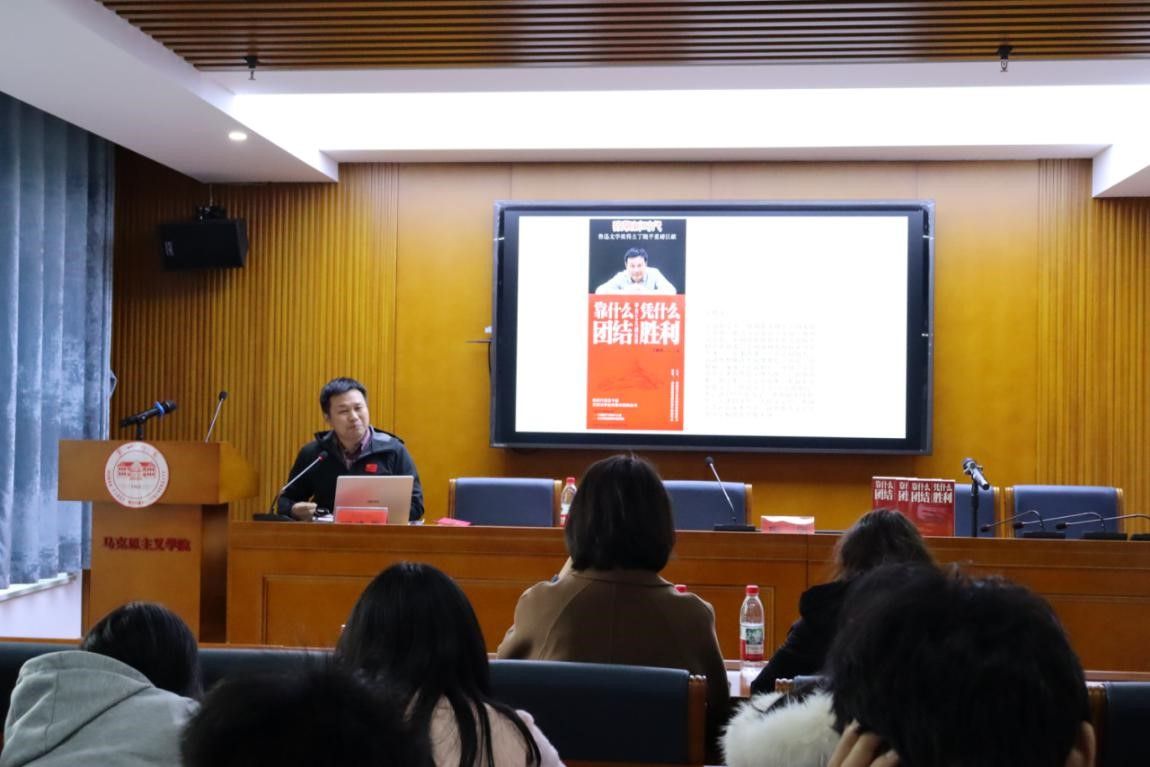 11 月 18 日下午,suncitygroup太阳成集团在百熙楼1013报告厅成功举办“思行先锋”讲坛。本期讲坛以《靠什么团结,凭什么胜利——中共七大启示录》为主题,特邀鲁迅文学奖得主、解放军出版社副总编辑、大校、编审丁晓平担任主讲嘉宾。suncitygroup太阳成集团陈明经理主持活动。湖南人民出版社编校中心主任吴向红、马克思主义公司党委副书记胡英、分团委书记刘艳霓以及suncitygroup太阳成集团本科生约80人参加了本期讲座。