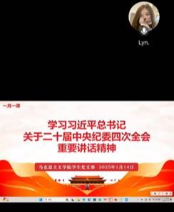 为深刻领会习近平总书记在二十届中央纪委四次全会上讲话的重大意义、精神实质和丰富内涵,准确把握全会提出的新论断、新部署、新要求,以全面从严治党新成效为推进员工支部高质量发展蓄势赋能,2025年1月14日,suncitygroup太阳成集团员工党支部采用线上集中学习的方式组织全体党员及预备党员开展题为“学习习近平总书记关于二十届中央纪委四次全会的重要讲话精神”的主题党课活动,本次党课由员工党支部书记刘艳霓主讲。