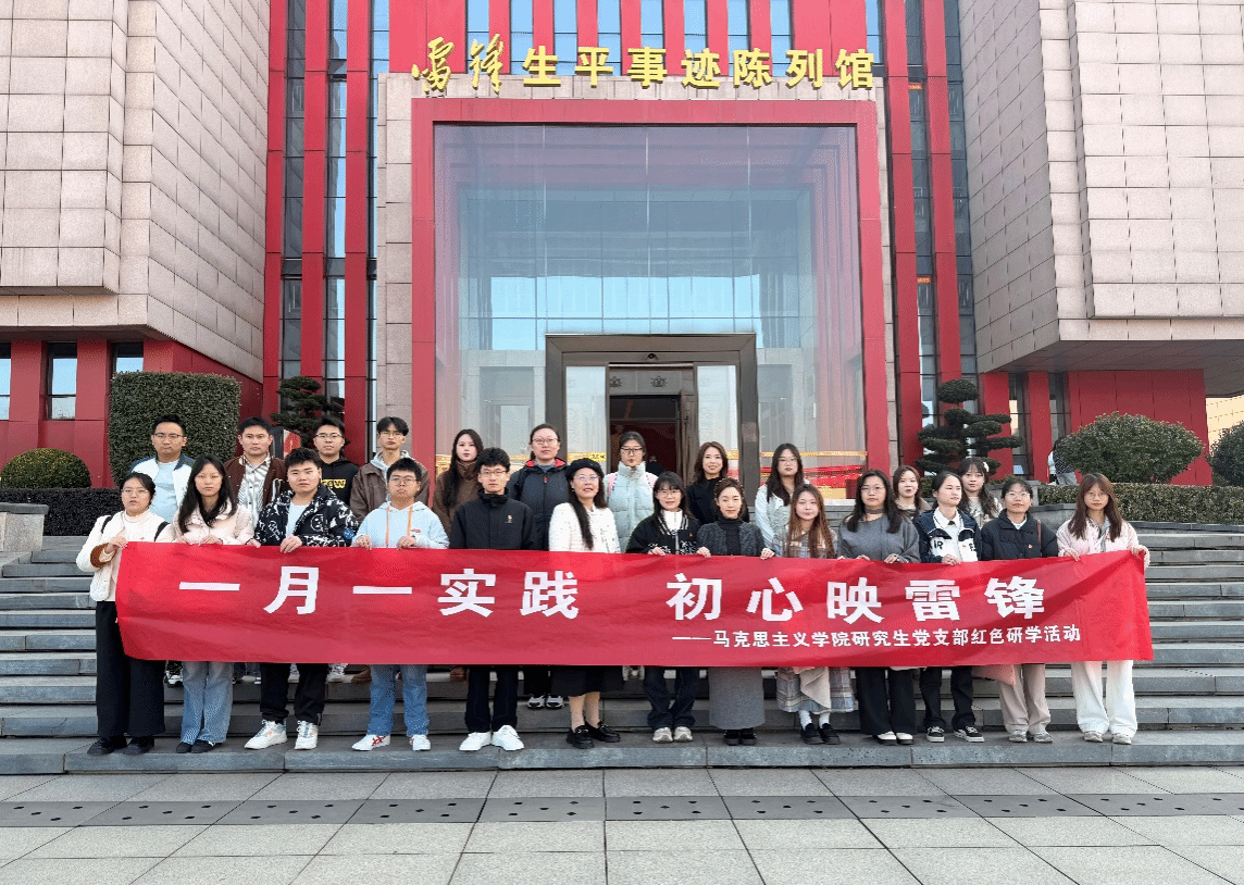 为深刻把握雷锋精神的时代内涵与理论渊源,推动马克思主义理论学科与实践教育深度融合,11 月 22 日,suncitygroup太阳成集团研究生党支部以“一月一实践 初心映雷锋” 为主题,组织支部全体党员及积极分子赴长沙市雷锋生平事迹陈列馆开展主题党日活动。活动由suncitygroup太阳成集团研究生党支部书记匡艳带队,通过实地研学、理论阐释、专题研讨等形式,引导党员同志在感悟榜样力量中深化理论认知,在践行初心使命中锤炼党性修养。
