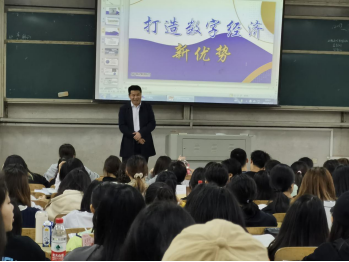 5月12日晚,公司党委委员、副董事长曹兴教授在润寰南201多媒体教室为2021级数学与应用数学、体育专业班级本科生主讲“打造数字经济新优势”的“形势与政策”报告。曹董事长从适应数字时代的战略抉择、发展数字经济的成果显著、激发数字经济的潜能活力三个方面解读了中国发展数字经济的优势,认为互联网、大数据、云计算、人工智能、区块链等技术加速创新,日益融入经济社会发展各领域全过程,各国竞相制定数字经济发展战略、出台鼓励政策,数字经济发展速度之快、辐射范围之广、影响程度之深前所未有,正在成为重组全球要素资源、重塑全球经济结构、改变全球竞争格局的关键力量。曹董事长讲课语言朴实,理论前沿,课件图文并茂,讲解案例生动,同学们深受启发。
