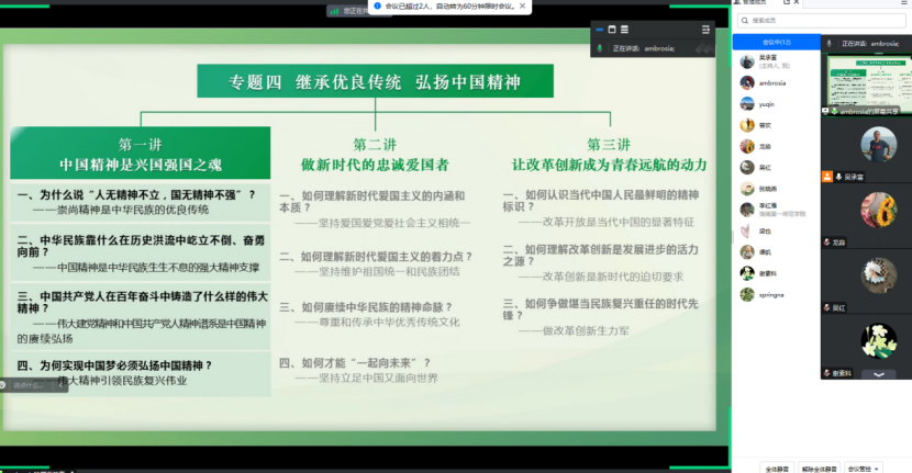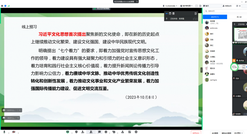 10月9日,公司“思想道德与法治”教研室积极响应公司“深化本科公司产品,全面提高人才自主培养质量”的号召,精心开展线上集体备课活动。备课会由教研室主任吴承富老师主持,教研室全体成员参加。