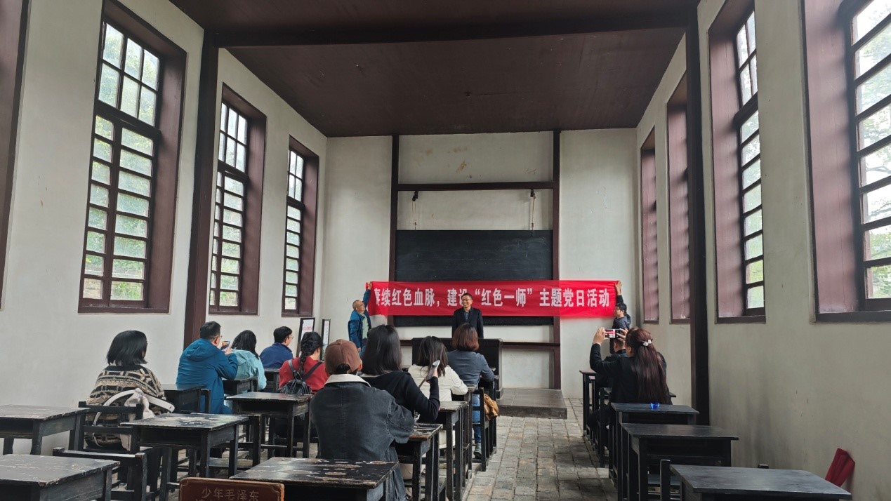 上午,公司教职工一行受到东山书院舒海江所长的接见,并在东山公司武文渡老师的激情讲解下,完整详细地了解了少年毛泽东在此求学期间的历程和经典历史故事。入学的《言志》作文考试、咏蛙诗的诞生过程,无不反映出他立志报国的远大志向。随后,在毛主席的教室内,公司党委书记阮东彪给大家上了青年毛泽东的专题党课,强调要学习伟人的积极进取与求索精神。最后,东山公司陈佑军董事长与公司教职工就大中小思政一体化建设作了深入交流。