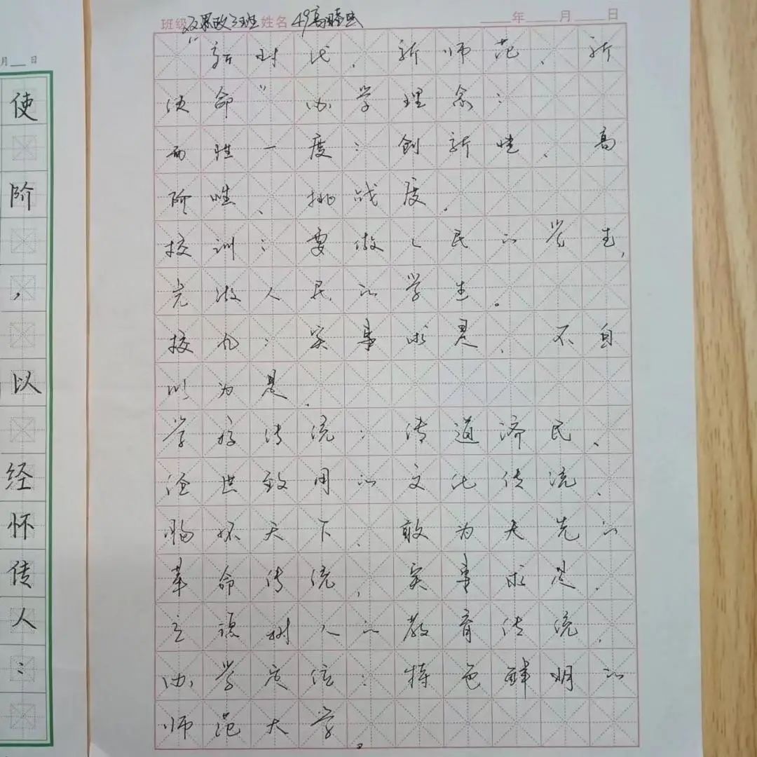 春发其华,秋收其实。一笔一划在横平竖直的时光流转中,接受传统文化熏陶,锻炼教师基本技能,熟能生巧凡事皆然 。以上就是第九周三笔字活动小结,期待大家都能在日复一日的练习中学有所获,写得一手好字,为未来的教师之生涯打好基础!为传承中华民族优秀传统文化做贡献!