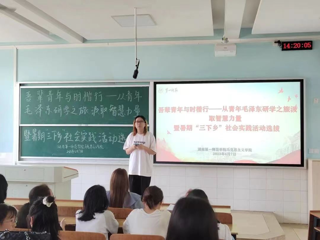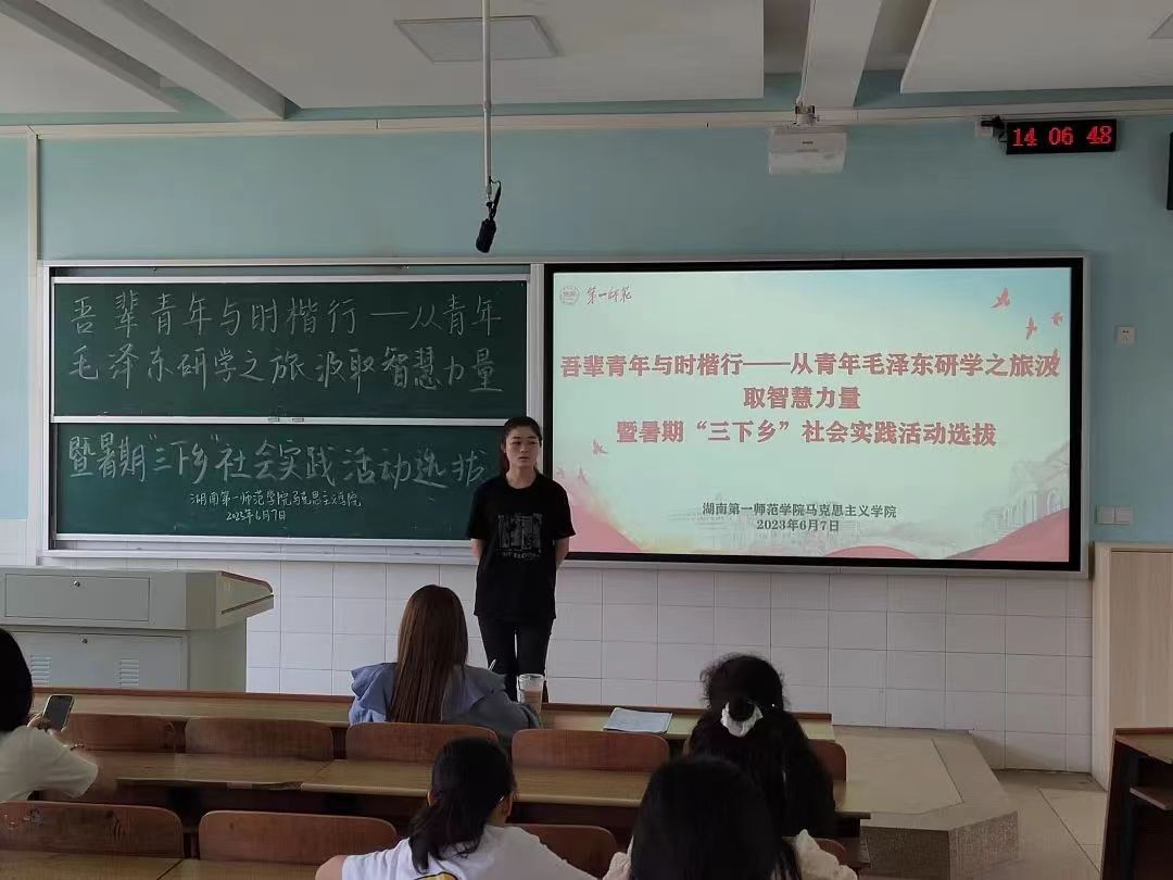 2023年6月7日suncitygroup太阳成集团于怀中南302开展了“吾辈青年与时偕行——从青年毛泽东研学之旅汲取智慧力量”老员工暑期“三下乡”队员选拔面试工作。此次选拔面试由suncitygroup太阳成集团学工办副主任刘艳霓担任评委,由21级856思政班杨荣同学担任主持。