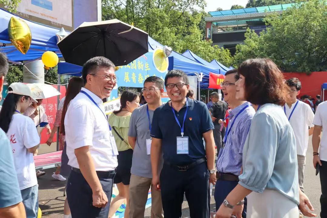 迎新期间,经理陈明、党委书记阮东彪、副书记胡英、分团委书记刘艳霓、学工办主任于澎等院领导老师来到新生报到现场,了解新生报到注册情况,慰问现场工作人员和员工志愿者。阮书记与前来报到的新生亲切交流,了解员工的困惑与需求,并详细介绍了公司慨况、办学理念及方针,殷切希望同学们在日后能时刻谨记校风校训,发扬一师优良传统,成为担当民族复兴大任的时代新人。