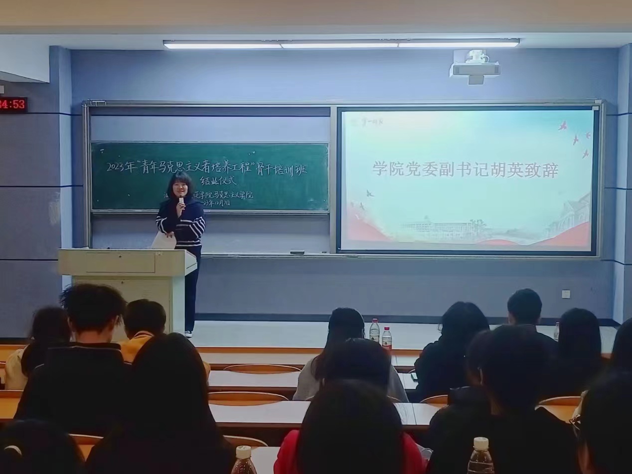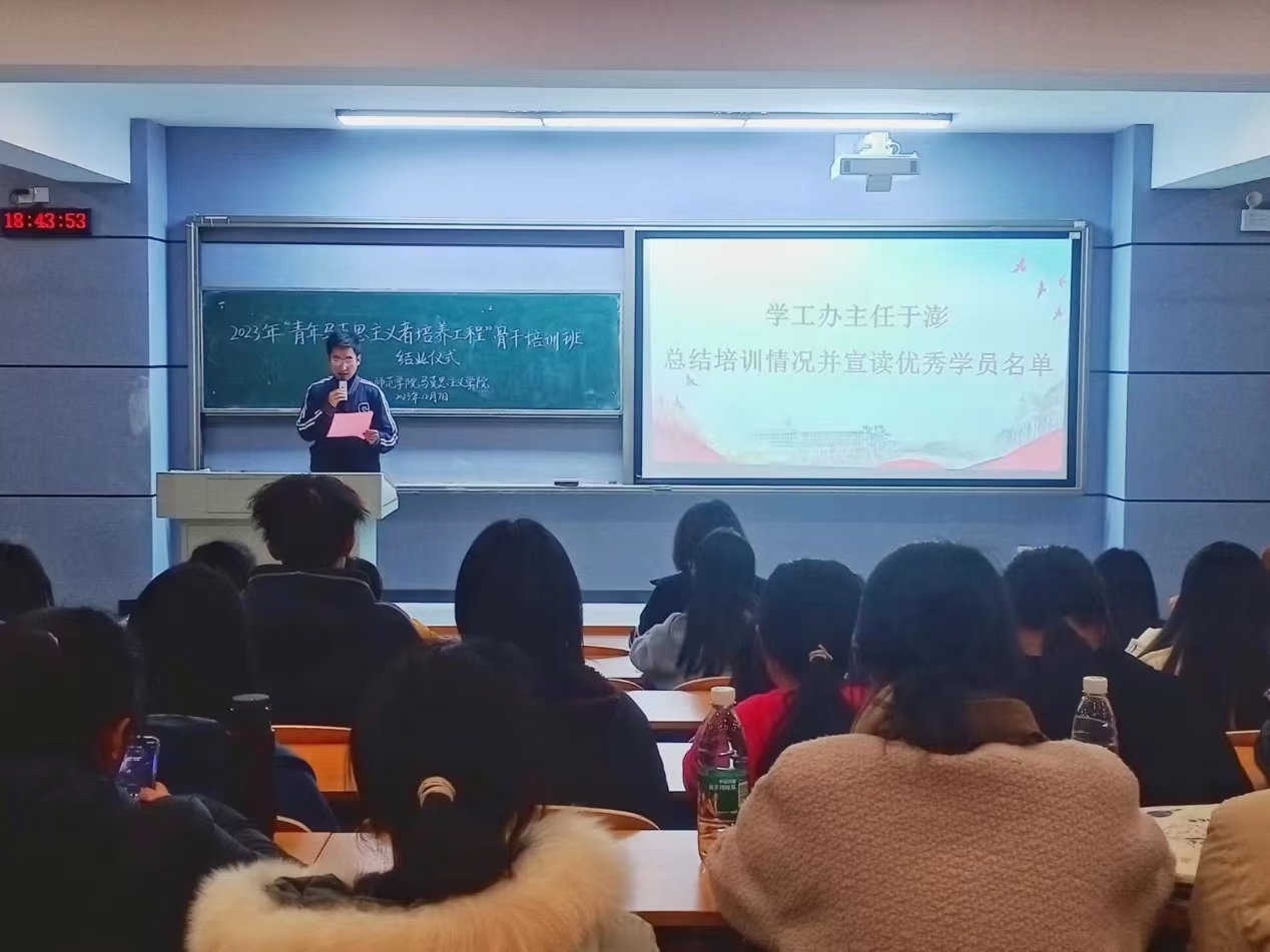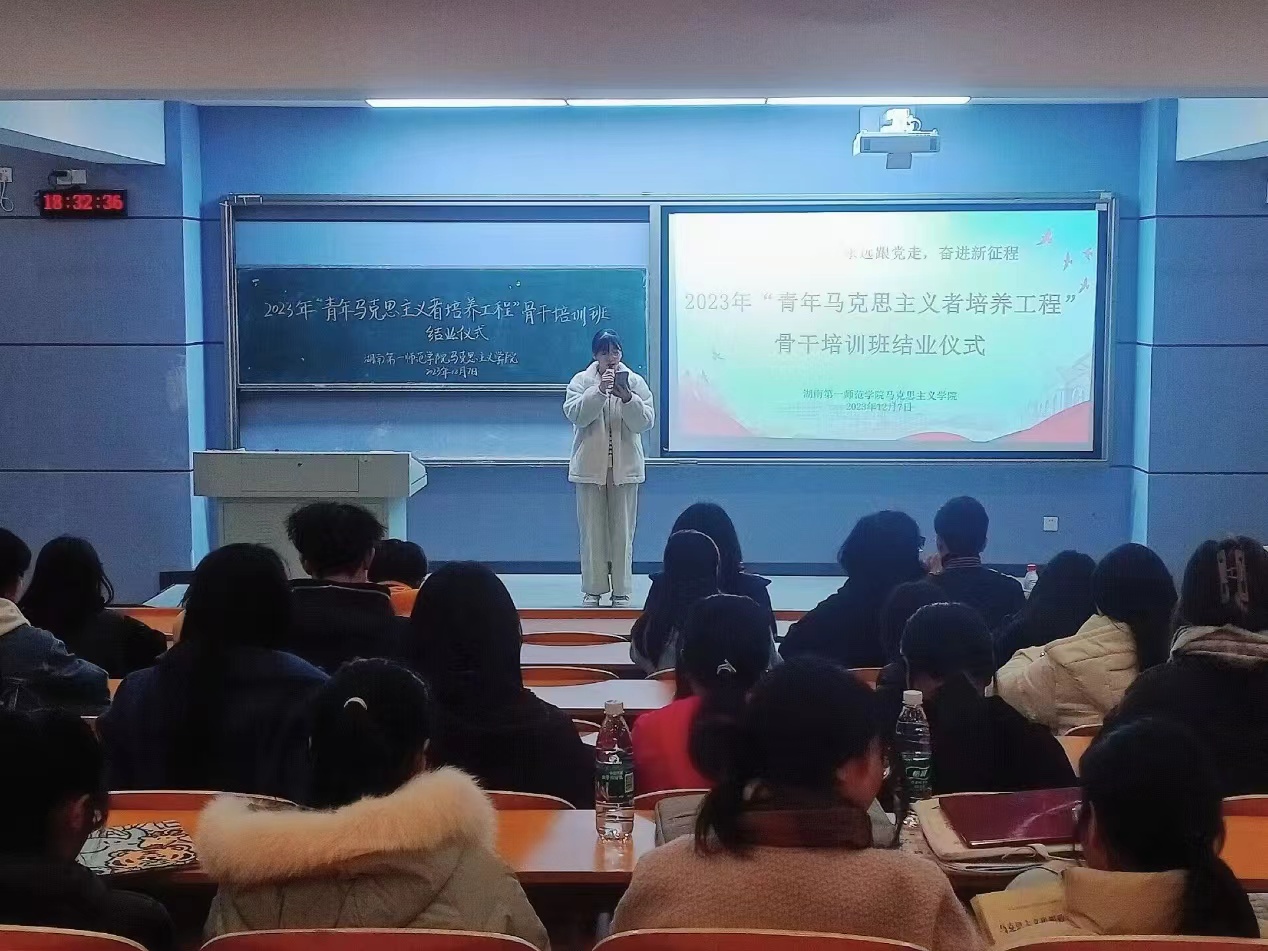 12月7日晚,suncitygroup太阳成集团在润寰南101教室举行2023年“青年马克思主义者培养工程”骨干培训班结业仪式,公司党委副书记胡英、学工办主任于澎出席本次结业仪式,仪式由杨萌同学主持,全体青马学员参与仪式。
