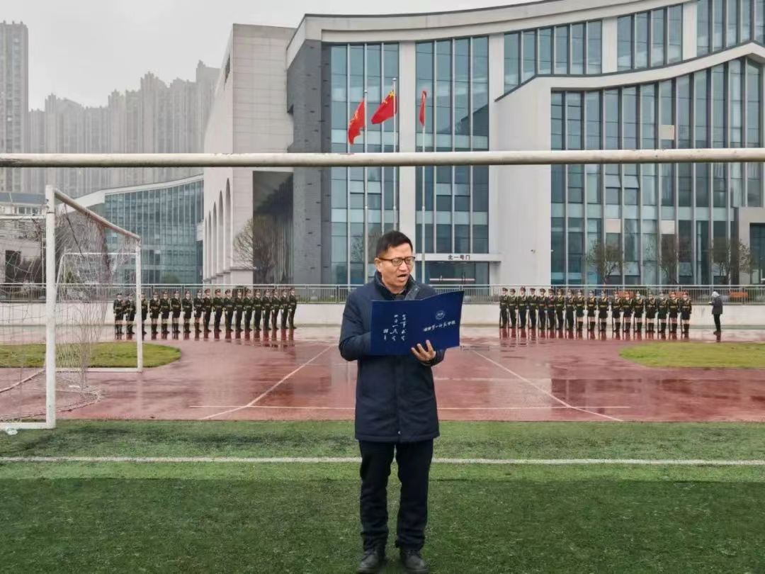 7时整,细雨蒙蒙中,升旗仪式正式开始。国旗护卫队迈着整齐的步伐,眼神坚定,脚步铿锵,护送国旗入场。伴随着庄严的《义勇军进行曲》,鲜艳的五星红旗冉冉升起,全体师生奏唱国歌,行注目礼。