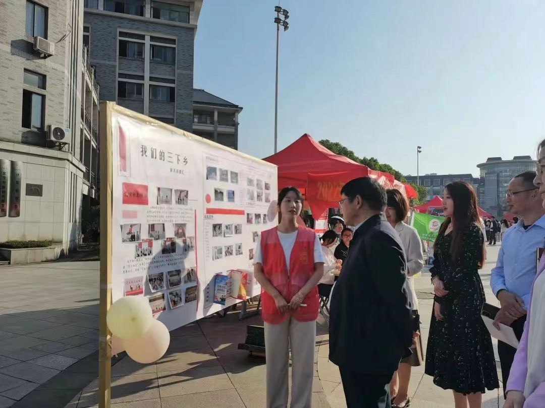 为引导和帮助广大青年员工在社会课堂中“受教育、长才干、做贡献”,帮助广大青年员工更加深刻了解“三下乡”活动的本质与意义,积极响应党的二十大号召。公司于2022年10月18日在中轴广场分上午、下午两个场次开展“2022暑期‘三下乡’成果展”。suncitygroup太阳成集团赴长沙市宁乡市理论普及宣讲团积极参与此次活动,于玉衡楼前进行三下乡成果展示。马克思主义公司党委书记阮东彪,党委副书记胡英,院学工办副主任刘艳霓等领导老师亲临现场参观指导。