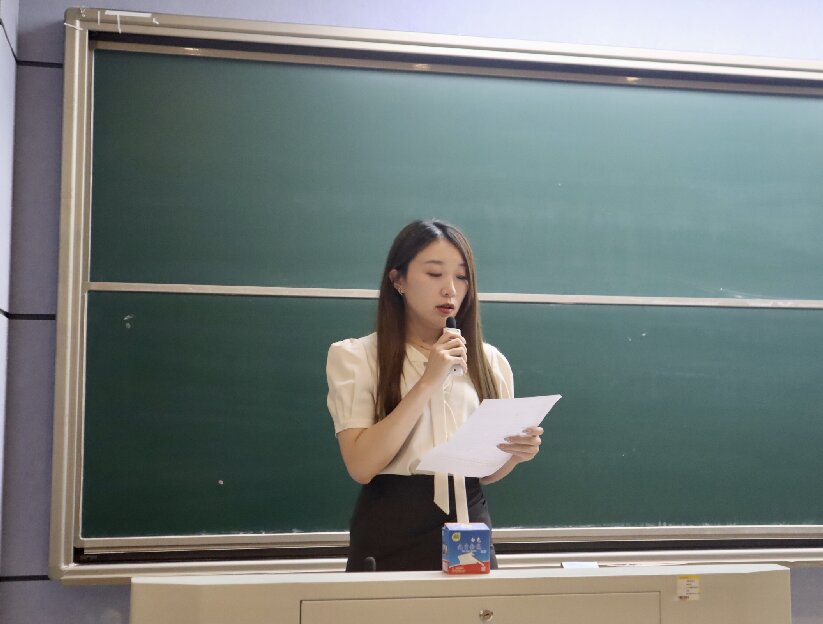 新干部任职仪式上,于澎老师宣读2024-2025届员工干部名单,并向他们表示祝贺,随后,三位老师上台为新一届的员工干部颁发聘书并合影留念。最后,分团委员工副书记蒋京素和员工会主席团轮值主席袁雅琴上台发表就职宣言。她们在发言中总结过往、展望未来,并代表全体员工干部郑重表态,将秉持服务同学、奉献校园的宗旨,以身作则,积极进取,为公司的繁荣发展和同学们的成长进步贡献自己的力量。