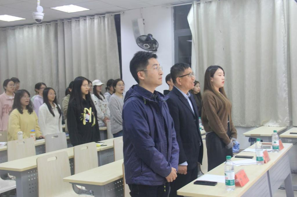紧接着,分团委书记刘艳霓介绍了员工守则与课程安排,激励学员们以青马工程为契机,成为有信仰、有知识、有能力、有悟性的马克思主义青年学者。党务办负责人梁承鸿则以自身经历为例,分享了她在青马工程中的收获与成长历程。她指出,青马工程不仅是理论知识的学习,更是心灵的一次净化与升华,希望学员们珍视这一宝贵机会,深入领会马克思主义的精髓,增强“四个意识”,坚定“四个自信”,为实现中华民族伟大复兴的中国梦奉献青春力量。开班仪式在激昂的团歌中圆满落幕。
