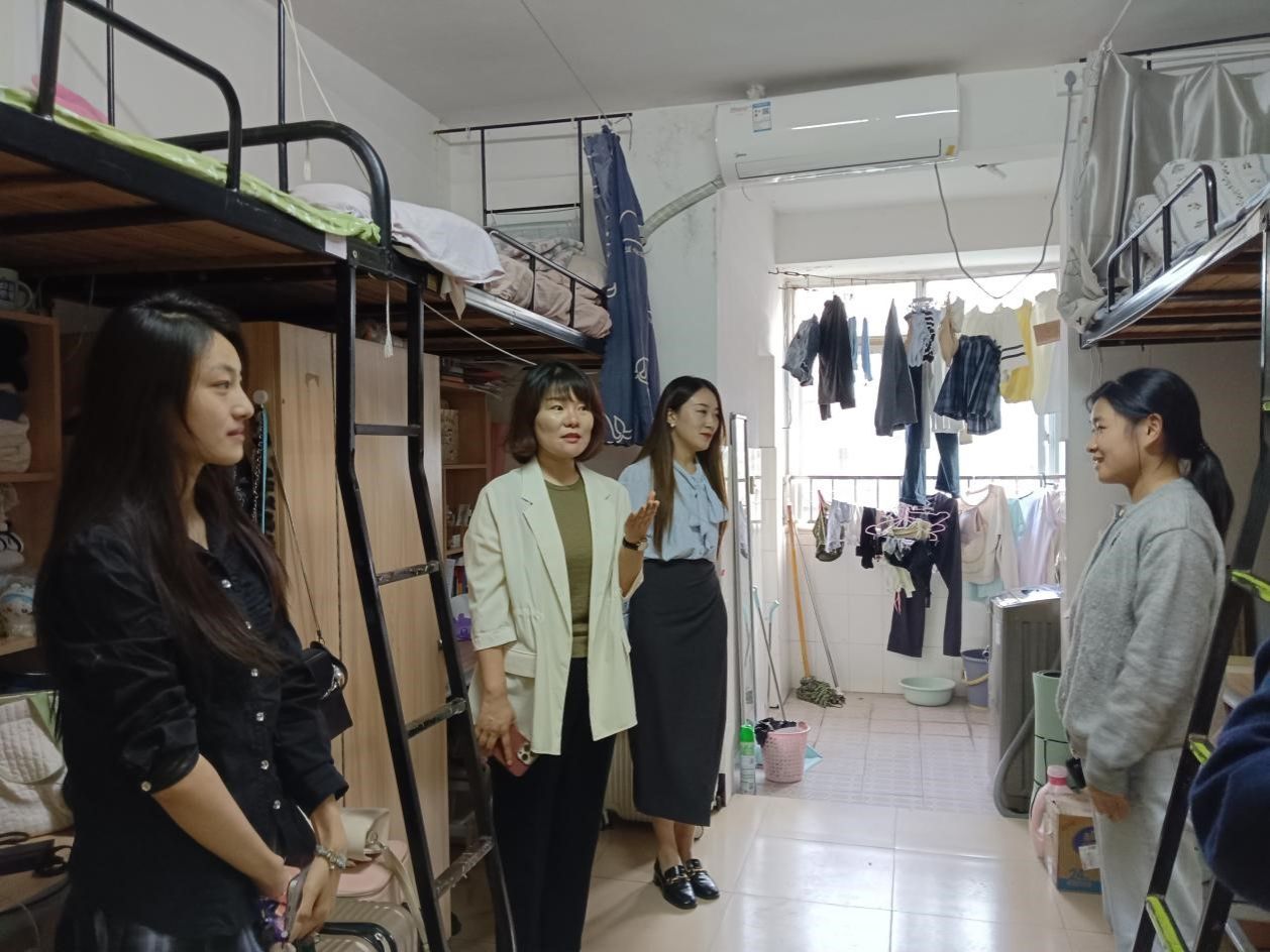 11月12日,马克思主义公司党委副书记胡英带领辅导员深入员工宿舍走访,了解宿舍内务情况,排查消防安全隐患,督促同学们爱护工作卫生,共建文明寝室。并深入了解同学们学习情况,鼓励同学们勤练三笔字,提升师范生技能;以及加强英语四六级备考,全面提升个人综合素质。( 一审:刘艳霓 二审:胡英 三审:曾玉华)
