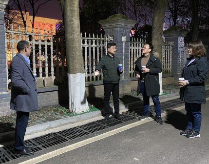 2月27日19:00,物化公司党委书记陈志武、学工部长张福国、副部长成夏炎、马公司党委副书记胡英一行人深入校园各个角落,查看校园围墙、员工公寓后快递站点、西门岗亭、体育场旁道路改造项目以及国基广场辅导员办公场地,细致检查公共安全设施是否完备,关注师生学习生活是否便利。每到一处都认真讨论,提出宝贵建议,团结一致为广大师生和人民群众站好岗、服好务,向着公司“四个一师”的发展目标不懈努力。