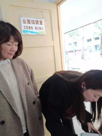 3月3日15:25,马克思主义公司党委副书记胡英带领辅导员刘艳霓检查了11栋所有寝室门贴,对不合格者登记,并反馈给宿管部;走访了2018级思政1班寝室,重点了解员工的就业动态,鼓励员工做好笔试及面试准备,积极参加公司近期组织的专场招聘,同时对内务整理提出要求;走访2018级765班寝室,鼓励员工认真复习英语,备战今年6月的考试,同时对内务整理提出要求。