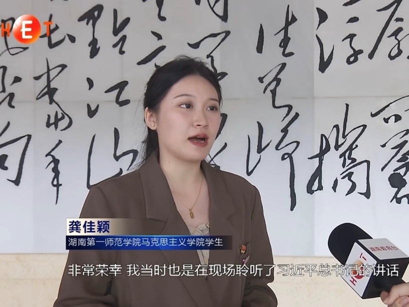 说到大学期间最难忘的经历,龚佳颖提到今年3月18日,她作为师生代表之一现场聆听习近平总书记嘱托,这对于正处毕业季的她无异于一盏明灯。总书记对思政课的重视、对青年学子的激励,中国教育报、湖南日报、新湘评论、湖南卫视等媒体、平台的一次次采访,让她在向大众分享育人初衷、心路历程的过程中,也更加坚定自己的初心。恰同学少年,正是风华正茂时。