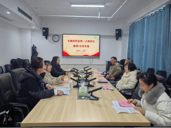 为进一步促进党的最新理论创新成果深度融入教学,提高思政课的吸引力和实效性,充分发挥好毛泽东思想和中国特色社会主义理论体系铸魂育人的作用,2月15日上午8:30,在百熙楼1010马院会议室,毛泽东思想和中国特色社会主义理论体系概论教研室全体成员对新学期第一课进行磨课,就“导论”这一部分的内容,进行讨论分析。该部分由教研室主任匡艳主持,雍容波老师主讲。
